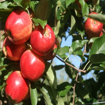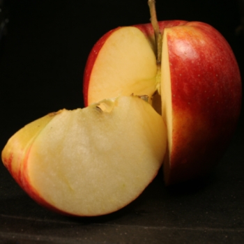 juteuse et sucrée, c'est la première pomme de la saison. Cueillie à maturité, on la reconnaît par sa belle couleur rouge |